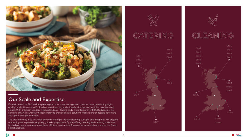 Working within the in-house design team at Elior UK, I am responsible for maintaining brand consistency across a vast array of internal and external communications. Throughout my career with the company, I have produced hundreds of documents ranging from high-stakes tender bids to nationwide internal reports.